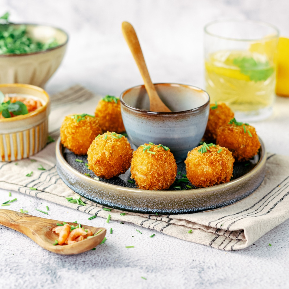 Deze bitterbal is bij uitstek geschikt voor een luxe borrelgarnituur. De visgarnituur van 30% garnalen geeft deze bitterbal de volle Hollandse garnalen smaak.