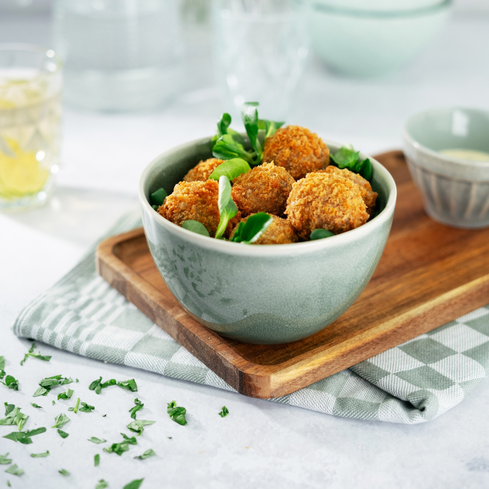 Dezelfde volle smaak en ambachtelijke structuur als u gewend bent en ook nog verantwoord van samenstelling. Een deel van het rundvlees is zorgvuldig vervangen door plantaardige ingrediënten zonder in te leveren op smaak, dit om vooruit te kijken. Het resultaat? Een croquet (en bitterbal) die het klassieke karakter behoudt, met een eigentijdse twist. Perfect voor chefs die bewust willen kiezen, zonder concessies te doen aan kwaliteit.