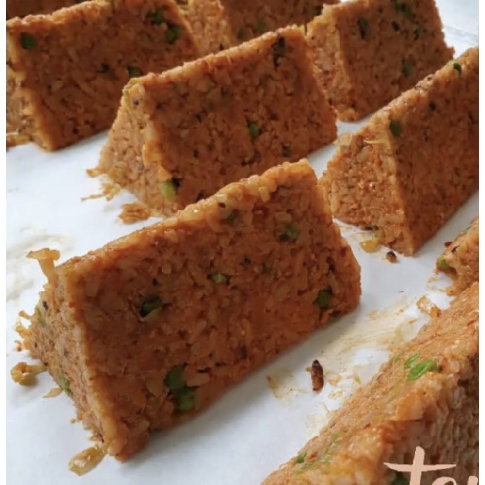 Deze snack heeft de vorm van een driehoek en als ingrediënten kimchi met sticky fried rice, licht pittig, en ontwikkeld in samenwerking met Oh Na Mi.
