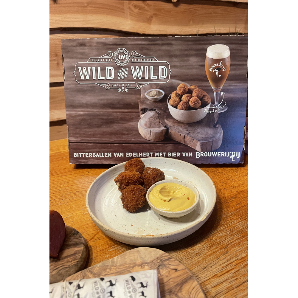Bitterballen gemaakt van geroosterde pompoen, gerookte paprika, ras-el-hanout, peterselie en paprika.